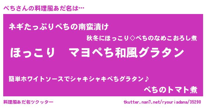 | 意味不明あだ名 | 『住所不定無職ぺち(91歳)』『ペロリンぺち』 |