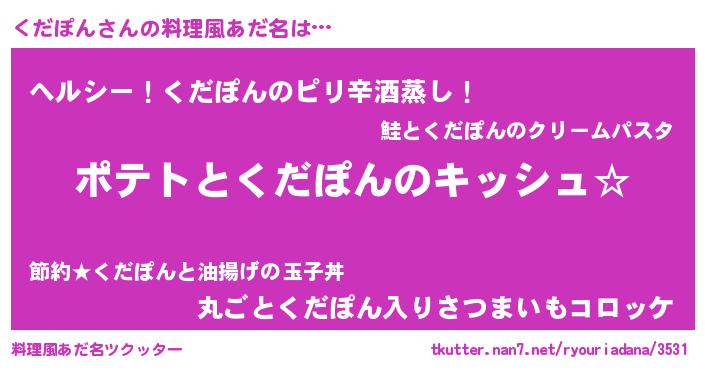 | 男性向けラノベタイトル風あだ名 | 『ダンジョンにくだぽんを求めるのは間違っているだろうか』 |