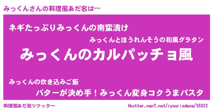 | 意味不明あだ名 | 『住所不定無職みっくん(6歳)』 |