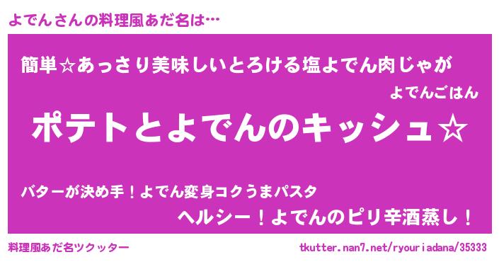 | 女子向けラノベタイトル風あだ名 | 『よでんの卵を拾いまして』『闇のよでん』 |