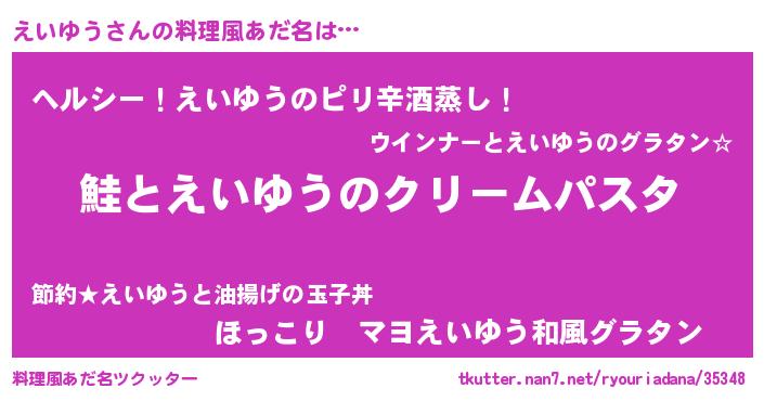 | 女子向けラノベタイトル風あだ名 | 『死神えいゆうの再婚』『闇のえいゆう』 |