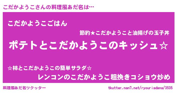 | 女子向けラノベタイトル風あだ名 | 『こだかようこの卵を拾いまして』 |
