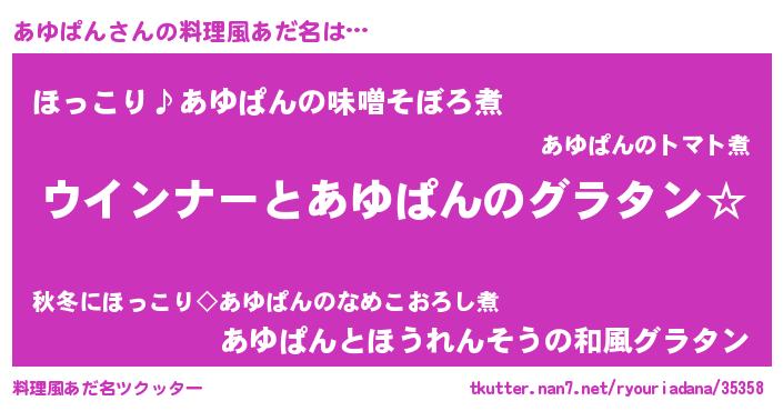 | ファンタジー風あだ名 | 『エターナルアユパンー』『アユフェル』 |