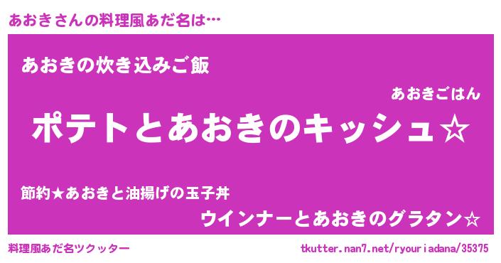 | 女子向けラノベタイトル風あだ名 | 『あおきの卵を拾いまして』 |