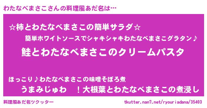 | 欧米人風あだ名 | 『ダニエルわたなべまさこ』 |