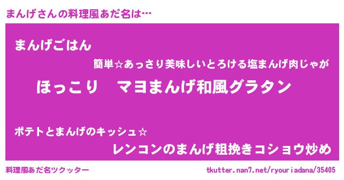 | 男性向けラノベタイトル風あだ名 | 『この素晴らしい世界にまんげを!』 |