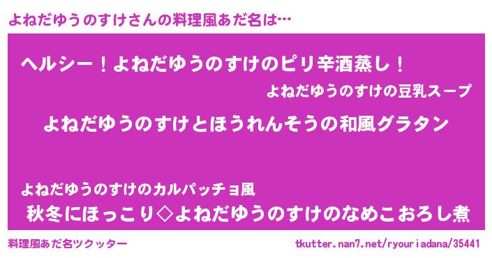 | 女子向けラノベタイトル風あだ名 | 『よねだゆうのすけの玉の輿計画!』 |