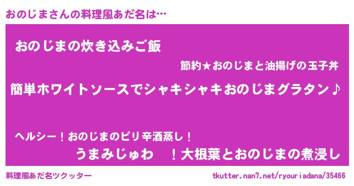 | 男性向けラノベタイトル風あだ名 | 『おのじまの嫁は女の子じゃないと思った?』 |