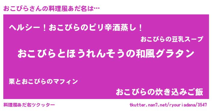 | ヘコむあだ名 | 『おこを』『おこにゅー』『酢こんぶ』 |