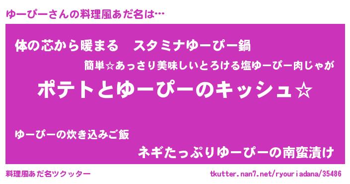 | 男性向けラノベタイトル風あだ名 | 『ダンジョンにゆーぴーを求めるのは間違っているだろうか』 |
