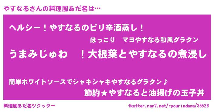 | 女子向けラノベタイトル風あだ名 | 『やすなるの婚約者』『闇のやすなる』 |