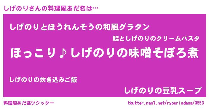 | ヘコむあだ名 | 『しげにー』『しげっぺ』『酢こんぶ』 |