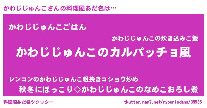 | 意味不明あだ名 | 『住所不定無職かわじじゅんこ(65歳)』 |