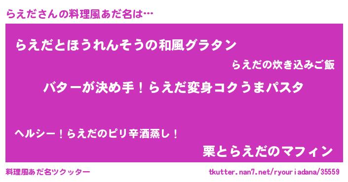 | ヘコむあだ名 | 『なまこ酢』『らえにー』『らえお』 |