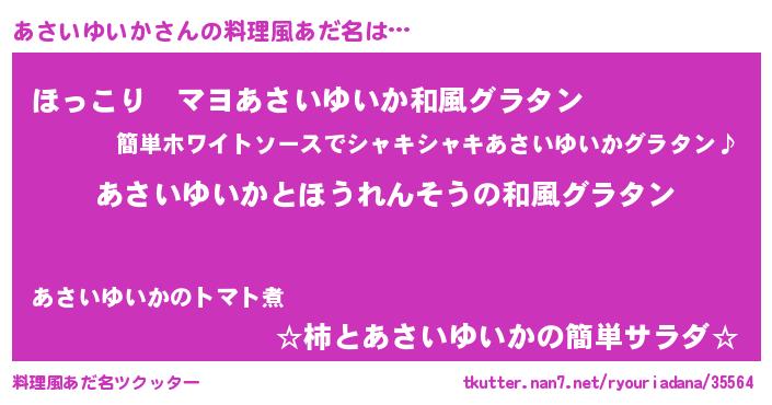 | 男性向けラノベタイトル風あだ名 | 『あさいゆいか~年齢イコール彼女いない歴の魔法使い~』 |