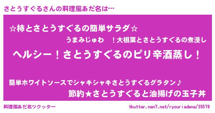 | 男性向けラノベタイトル風あだ名 | 『Re:さとうすぐるから始める異世界生活』 |