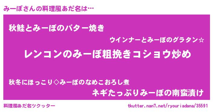 | 意味不明あだ名 | 『自称みーぼ』『永久保存みーぼ』 |
