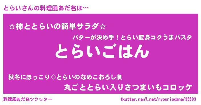 | 意味不明あだ名 | 『めかぶ科とらい属』『自称とらい』 |