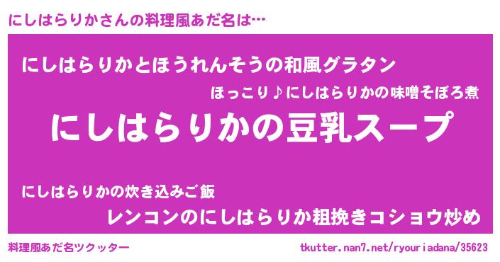 | 意味不明あだ名 | 『とにかく怪しいにしはらりか』 |