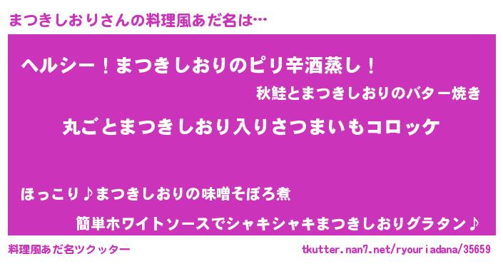 | ヘコむあだ名 | 『まつっちょ』『まつきしおり(爆)』 |