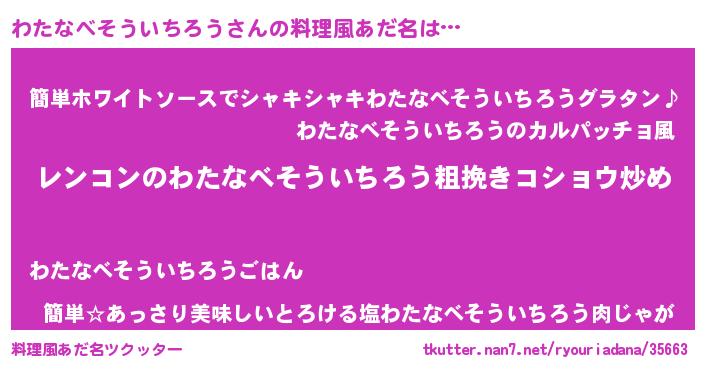 | 意味不明あだ名 | 『自称わたなべそういちろう』 |