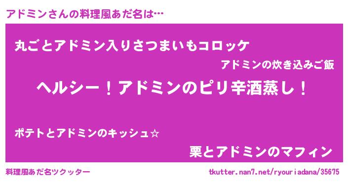 | 意味不明あだ名 | 『自称アドミン』『なめこ科アドミン属』 |
