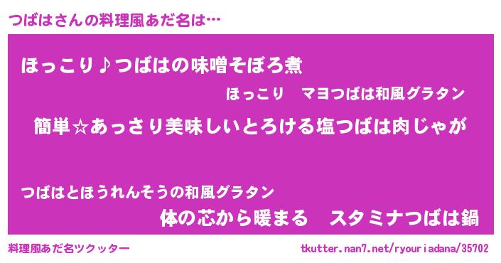 | 意味不明あだ名 | 『永久保存つばは』『ペロリンつばは』 |