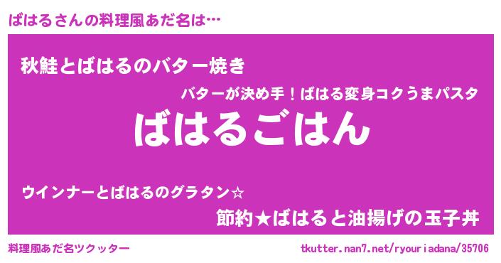| 意味不明あだ名 | 『めかぶ科ばはる属』『永久保存ばはる』 |