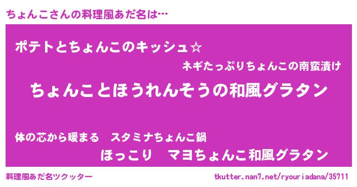 | 男性向けラノベタイトル風あだ名 | 『転生したらちょんこだった件』 |