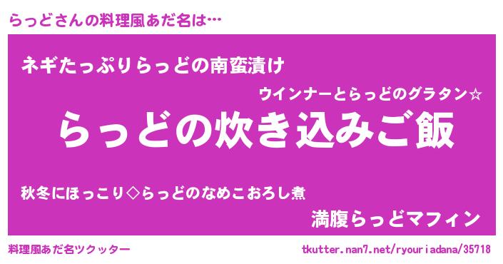 | ヘコむあだ名 | 『らっもー』『らっど(遠い目)』 |