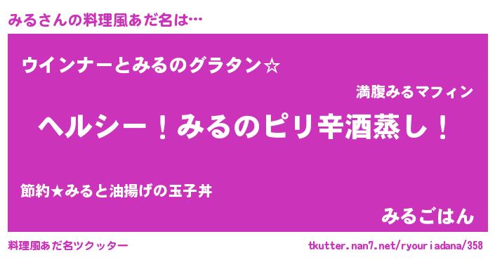 | ヘコむあだ名 | 『酢こんぶ』『みる(爆)』『みるもー』 |