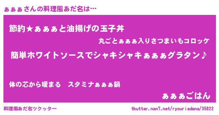 | 男性向けラノベタイトル風あだ名 | 『ぁぁぁの嫁は女の子じゃないと思った?』 |