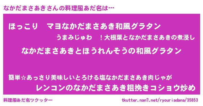 | 男性向けラノベタイトル風あだ名 | 『なかだまさあき~年齢イコール彼女いない歴の魔法使い~』 |