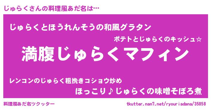 | 意味不明あだ名 | 『永久保存じゅらく』『ニラ科じゅらく属』 |