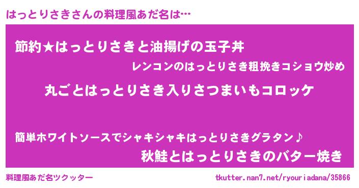 | 女子向けラノベタイトル風あだ名 | 『乙女ゲームの破滅フラグしかない悪役はっとりさきに転生してしまった…』 |