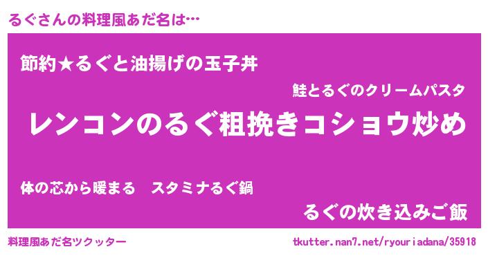 | 意味不明あだ名 | 『自称るぐ』『ペロリンるぐ』 |