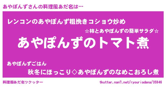 | 男性向けラノベタイトル風あだ名 | 『おまえをオタクにしてやるから、俺をあやぽんずにしてくれ! 』 |