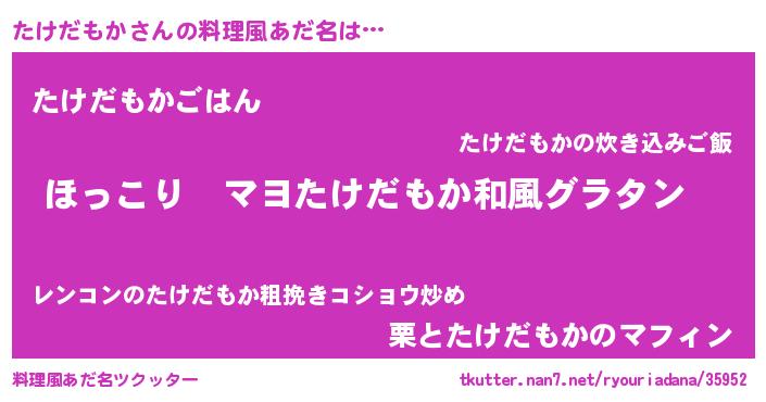 | 男性向けラノベタイトル風あだ名 | 『この素晴らしい世界にたけだもかを!』 |