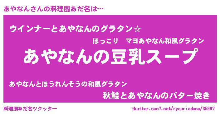 | ポケモン風あだ名 | 『ヒアヤナン』『アヤナダネ』 |