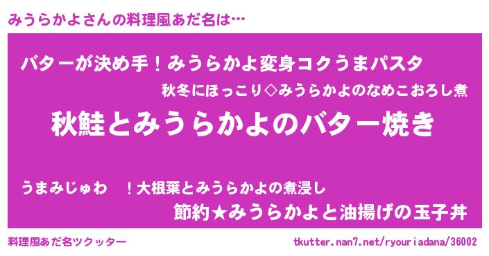 | 胡散臭い通販商品みたいなあだ名 | 『来世でも幸せになれる健康食品…その名も「みうらかよ」』 |