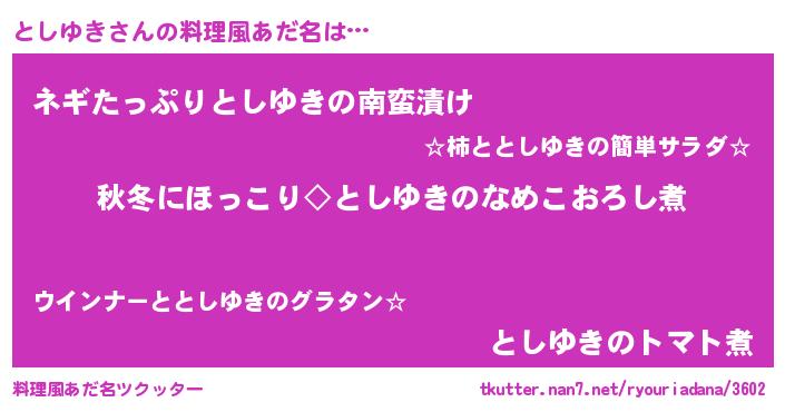 | 男性向けラノベタイトル風あだ名 | 『としゆきに滅ぼされるだけの簡単なお仕事です』 |