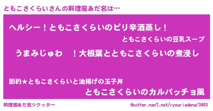 | ファンタジー風あだ名 | 『エターナルトモコサクライー』 |