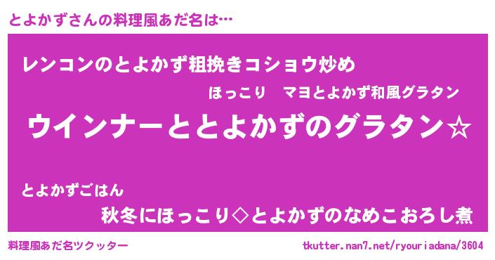 | 意味不明あだ名 | 『とよかずフォーエバー』『自称とよかず』 |