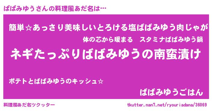 | 胡散臭い通販商品みたいなあだ名 | 『億万長者になれるブレスレット…その名も「ばばみゆう」』 |