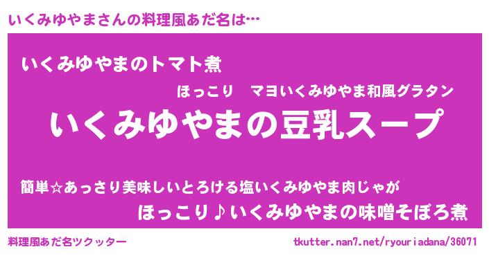 | 胡散臭い通販商品みたいなあだ名 | 『信頼と実績のサプリメント…その名も「いくみゆやま」』 |
