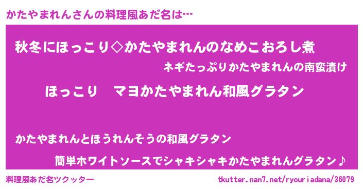 | 胡散臭い通販商品みたいなあだ名 | 『あなたにだけ特別に提供する限定10本のレアな日本酒…その名も「かたやまれん」』 |