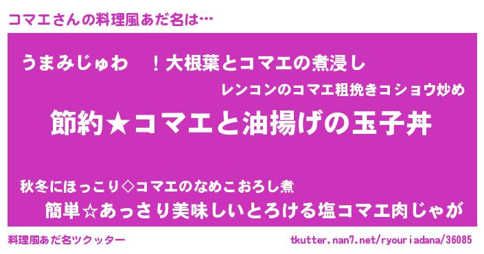 | ファンタジー風あだ名 | 『コマフェル』『エターナルコマエー』 |