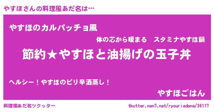 | ピコ太郎風あだ名 | 『ヤコ太郎』『ピヤ次郎』『ヤス五郎』 |