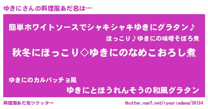 | 意味不明あだ名 | 『とにかく怪しいゆきに』『自称ゆきに』 |