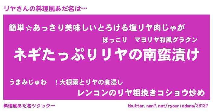 | ファンタジー風あだ名 | 『リヤフェル』『リヤディッシュ』 |
